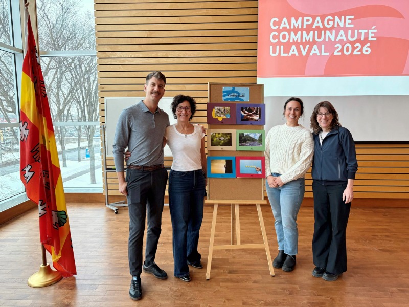 Sous le leadership de Nancy Gélinas, doyenne de la Faculté de foresterie, de géographie et de géomatique et coprésidente de la Campagne Communauté ULaval 2026, la Faculté a proposé une pause‑santé énergisante, avec le vélo‑smoothie au centre de l’activité. Fidèle à la thématique de la Campagne, un bricolage imaginé par la doyenne invitait les participantes et participants à découvrir les différents fonds facultaires et à identifier ceux qui les interpellaient le plus.