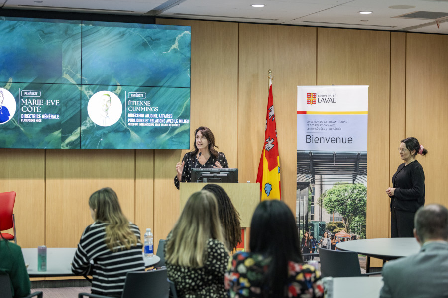 D’entrée de jeu, l’allocution de Caroline Girard, cheffe de la Direction de la philanthropie et des relations avec les diplômées et diplômés, a permis de briser un mythe : « On croit souvent que la philanthropie, c’est réservé aux grandes fortunes. Faux. Elle commence par des gestes simples : donner du temps, partager ses compétences, faire un don, ou même devenir ambassadeur d’une cause. »